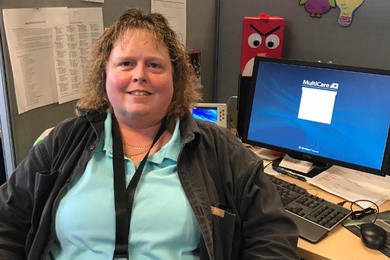 Roxann working at the Multicare Customer Service Center in Auburn, WA.