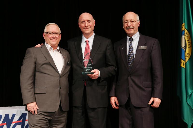 Pictured from left to right: presenting the award is Ted Croft, Chairman of the Board, PNAA, John Theisen, and John Graham, PNAA Board Member.